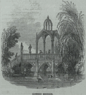 The Manor House already had an established garden and a 3 acre lake but Cross commissioned Henry Phillips to remodel them and design at least one of the main buildings. Best known for his work in and around Brighton, Phillips was the author of eight now largely forgotten books on horticulture, but he was also busy on other major projects [which I’m planning to write about one day] and can’t have been involved for very long. Nevertheless the grounds were quickly planted with new flower-beds, avenues, walks, and “undulating lawns”, while an early guidebook to the gardens gives a list of its two hundred varieties of hardy trees. The overall effect meant according to The Mirror that “it is almost impossible to give …an idea of their beauty and variety.” There was even talk of a small botanical garden, partly because of the proximity of so many good commercial nurseries. Indeed Loudon says that these nurseries should donate plants to the new gardens to enhance both it and their own reputations.