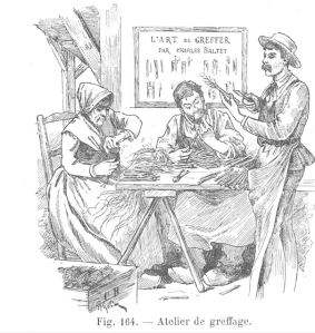 One result was that grafting techniques became the subject of several serious manuals, like Charles Baltet’s and moved from being practiced on a small scale to an almost industrial one as can be seen from other illustrations in his book