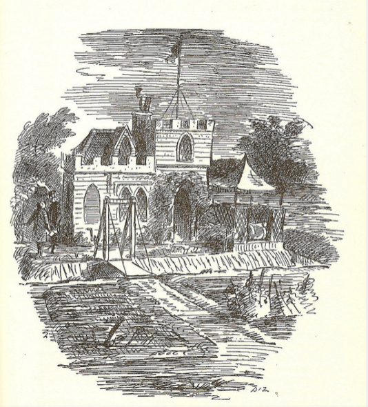 It’s sad that none of the 19thc artists who illustrated Great Expectations attempted to portray Wemmick’s castle, and indeed I can only find Edward Ardizzone’s version from later illustrators. If anyone knows of other images please let me know