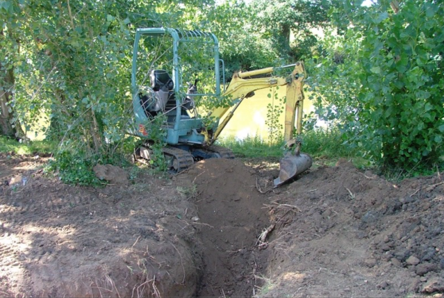 In the process of reclaiming the ground at the new place we had to clear 50 years worth of agricultural rubbish spread over nearly half an acre, a task too big for us on our own. The upshot was it got bulldozed into a heap before being buried in a very deep hole dug in one corner of the garden, with the spoil from the hole dumped on top.