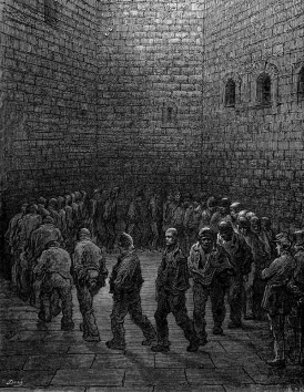Part of Wemmick’s work involves visiting prisons to speak to Jagger’s clients, and on one occasion he invites Pip to join him on a visit to Newgate, London’s main crimianl prison. Pip comments: “It struck me that [Wemmick] walked among the prisoners much as a gardener might walk among his plants” , and he even refers to the prison as a greenhouse. He remarks on “the advance they had made, since last observed, towards coming out in full blow at their trial”, while a new prisoner reminds Wemmick of “a shoot that had come up in the night”. Before leaving the clerk spends extra time with someone who is to be executed in a few days time, and after saying goodbye and turning to leave, he looks back and nods “at this dead plant, and then cast his eyes about him in walking out of the yard, as if he were considering what other pot would go best in its place.”