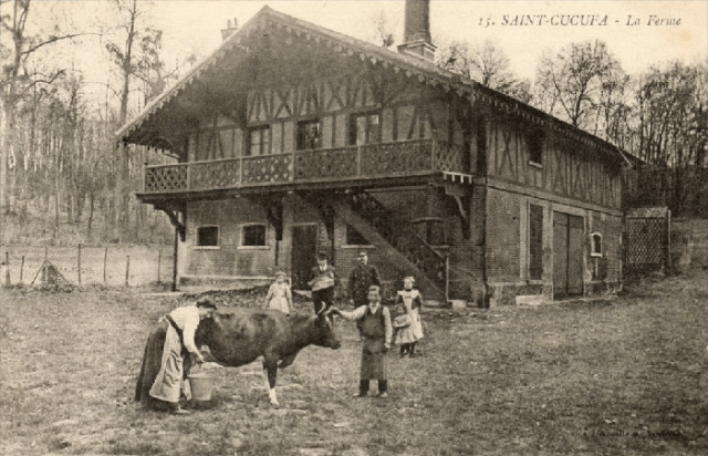 The buildings were the fashionable rustic Swiss style and to complete the faux Alpine picture Josephine imported a herd of cows from Switzerland, along with a Swiss herdsman and dairymaid who were to live in one of the houses. The whole concept is reminiscent as the mock village built in the park at Versailles for Marie-Antoinette and her friends to play at being peasant farmers. Such antics were typical aristocratic conceits with others at Chantilly, where the Prince de Condé built a mill, dairy and thatched cottages, and at Ermenonville where the Marquis de Girardin too had established a farm.