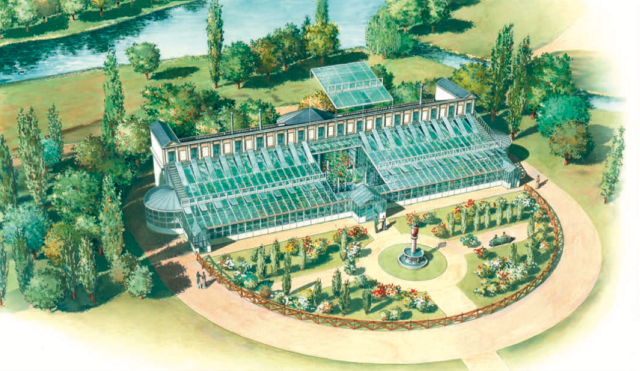 Last week’s post about Josephine and the landscape at Malmaison left out any discussion of the plants grown there, so today’s post is going to make up for that, because it was plants that really captured her imagination. That meant, of course, they had to be housed properly. Her dream came true in 1805 with the opening of what was to become the centrepiece of the plant collection. But it was more than that. The new building is thought to have been the largest area of glass yet erected, and it became the ancestor of the grand conservatories of 19thc Europe.