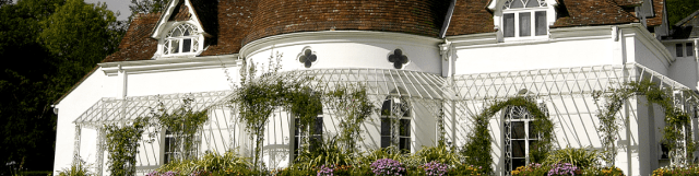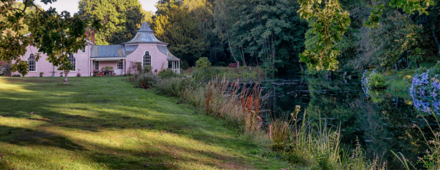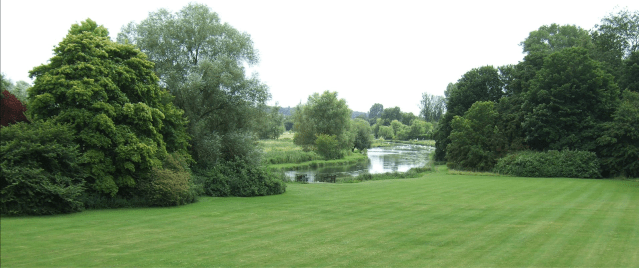 It is not known who designed the gardens and grounds that surround Houghton but there is real sense of harmony between the shape of the house, the lawns that slope gently down in front and the sweeping bends of the river below. It featured in two articles in Country Life in April 1951. The gardens are now open to the public. Details on the Houghton Lodge website.