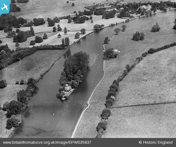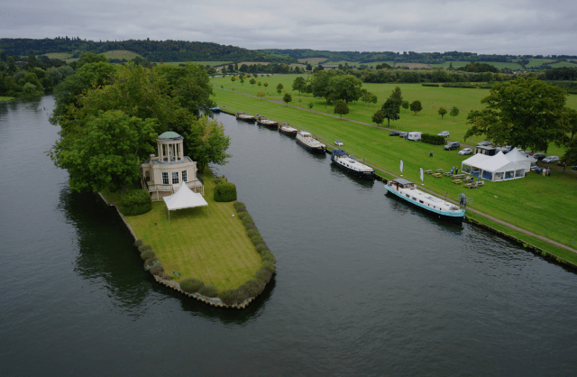 Freeman also asked Wyatt to build a summerhouse as an eye-catcher at the end of Brown’s principal vista from the house. Wyatt designed a fishing lodge which was bow-fronted and stuccoed building with a cupola. Known as the Temple it sits on a really prominent position at the tip of a small island in the Thames which overlooks what is now the site of the start of the Henley Regatta.
