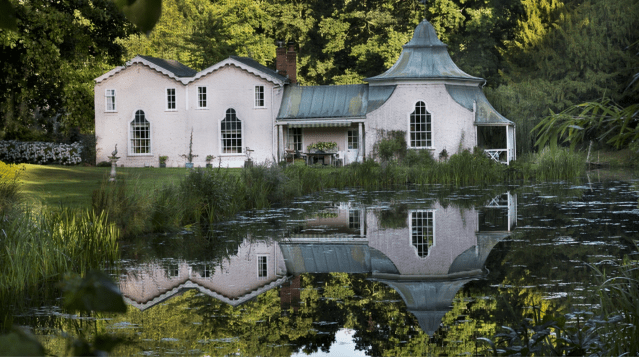 Our third late 18thc fishing lodge is much grander in scale but still cosily rustic. Houghton Lodge in Hampshire is one of the earliest and best surviving examples of a Cottage Ornée, a genre of ‘picturesque’ Gothic architecture that flourished in and around the Regency period. Houghton is thought to have been designed by John Plaw – one of the pioneers of the style – or possibly John Nash, around 1793. It was probably intended as a fishing lodge. As their website says “Some fishing lodge!”