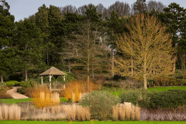 A large linear Winter Garden opened in 2018. That’s a real response to the need to keep visitor and their spending power flowing in. It straddles the Millennium Avenue – a feature of the original masterplan – of oak and ash. Apart from the usual run of plants that peak in interest during the coldest months there are also a series of sculptures by David Watkinson exploring the gradual decay of a leaf.