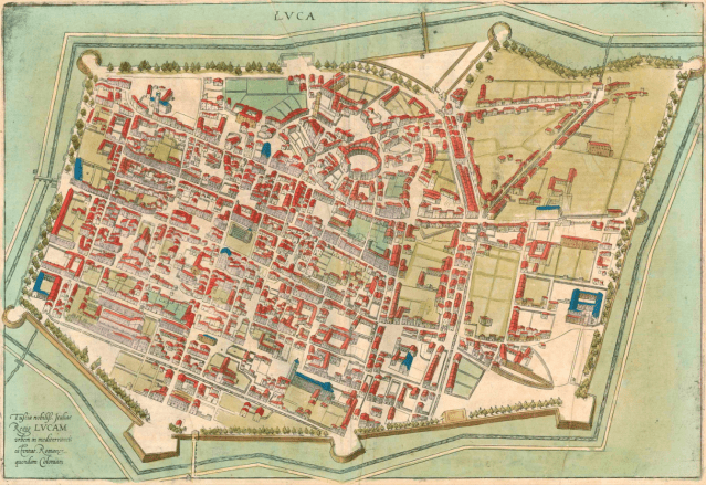 This was not as unusual as it might seem. Look at the map of Lucca below and you’ll see that the ramparts there are also planted with trees and have been turned into a perimeter walk.