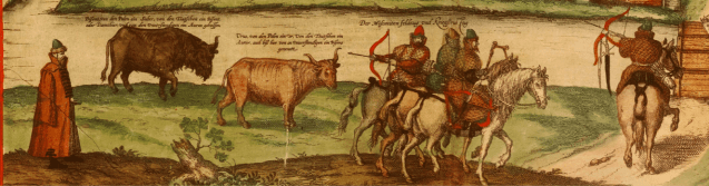 Although Braun wasn’t the first person to use this technique, there is at least one an earlier image –Nuremberg 1552 – he claimed he did it for a particular reason. While Europe’s rulers may have argued and even fought each other, they were all Christian, and one of the worries about the atlas was that it would also be useful to their mutual enemy, the Ottoman Turks, who were a real military and naval threat to eastern and southern Christian Europe. Braun wrote in the first volume in 1572: ‘Nobody has to be afraid that our work may harm the Christians in any way, because with its help their major cities could be conquered by the enemy. That danger, which is rather real, is avoided in this way. We asked the different kinds of clothing of all nations and several people to be drawn at each city, both of the high and low classes. The reason is because the bloodthirsty Turks, who are not allowed to look upon representations of the human form, will never allow this book, however great their use for it may be’ Translation from University of Utrecht]