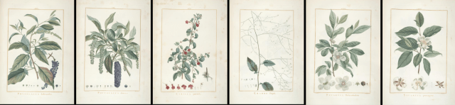 Other books Redouté illustrated during the revolutionary period included one on forestry and trees by Henry Louis Duhamel du Monceau; : Traité des Arbres et des Arbustes qui se cultivent [en Pleine Terre] en France. This came out in 44 parts between 1800—1819 illustrated with colour plates by Redouté, including 42 of Australian trees and shrubs.