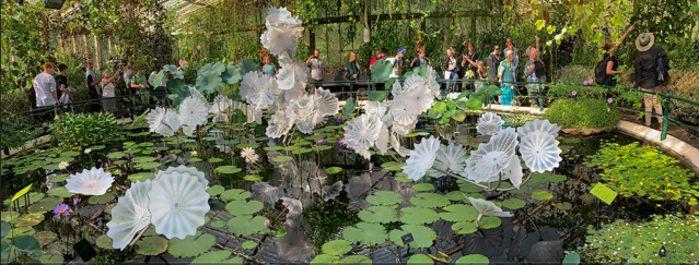 But alongside these huge city-wide installations he was also thinking of his other great passion apart from glass itself: Plants, or rather where the two combined,  in botanic gardens, and particularly in their conservatories and hothouses, the oldest of which were glazed with hand blown glass.
