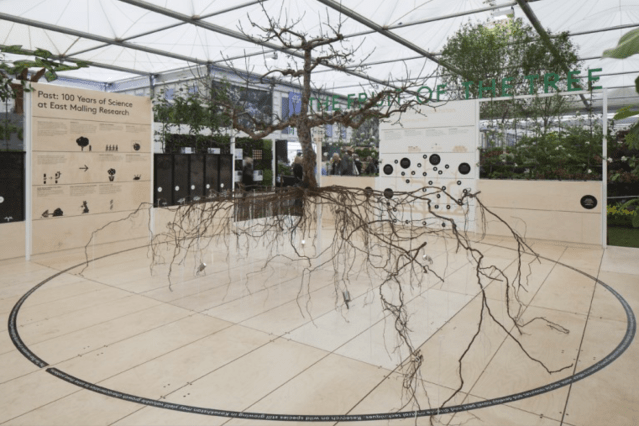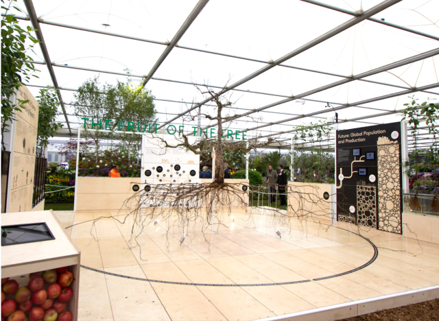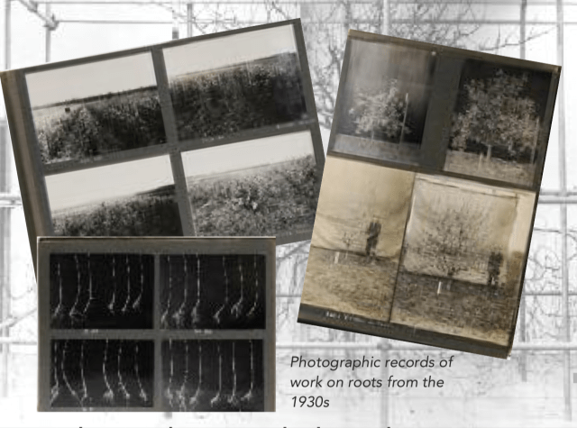 Other scientists at East Malling studied roots systems to determine their role in water absorption, their association with mycorrhizae, and the impact of soil management, planting density, irrigation, and cropping levels. But how can you study roots when they’re underground and cant be seen? The answer was most spectacularly shown at the Chelsea Flower Show in East Malling’s Centenary year, 2013.