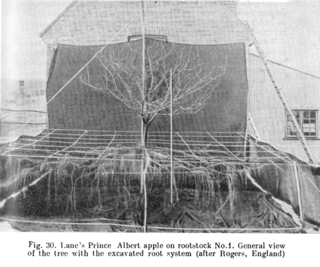 Later she looked at a whole range of complicated botanical issues relating to dwarfing rootstocks, including “differences in the bark/wood ratio, the relative proportions of storage to conduction and strengthening tissues in stems and roots and the size of xylem vessels, as well as morphological variation in leaf structure.” The results were all closely aligned with “the most dwarfing rootstocks having more living tissue and less strengthening tissue per unit of root.”