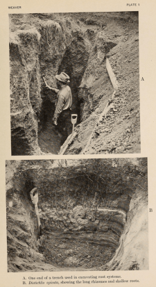 But excavation only gives a snapshot in time and of course it kills the plant. So in the 1930s a new system was tried. Trenches were dug and glass panels set into their sides so that the growth of nearby roots could been seen and studied.