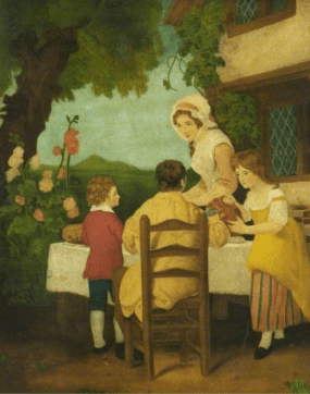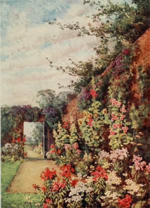 A Childs Garden with Hollyhocks (1905) by Jessie Willcox Smith