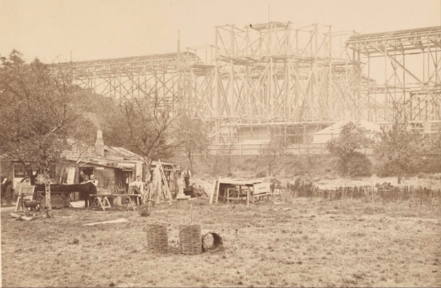 The Museum, the Art School and indeed most of the other institutions were originally housed in temporary buildings or existing ones which were adapted. So Brompton Park House was reconfigured by Fowke to provide initial accommodation for the Art School. It also accommodated a detachment of the Royal Engineers who were employed in clearing the site and constructing the Museum, one of whom can just be seen in the picture of the house above. The east end of the building was dismantled in about 1865.