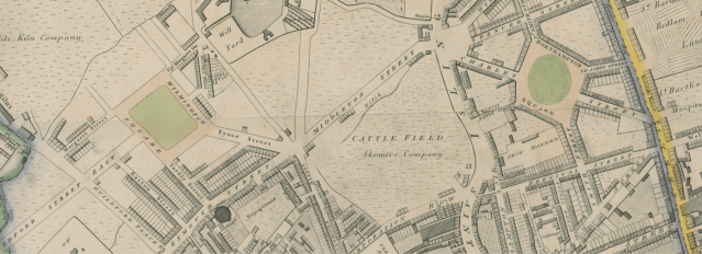 Wilmington and Northampton Squares near the Angel detail from Faden’s 1819 edition of Horwood’s Map of London