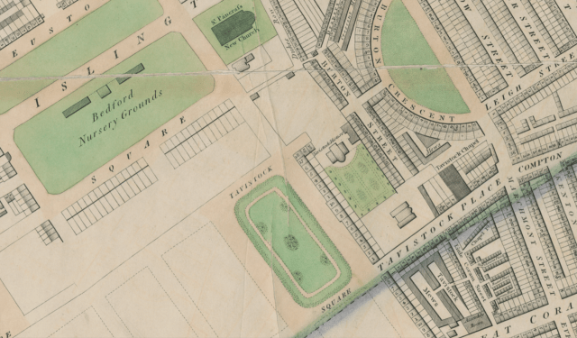 As a result the fields of Bloomsbury began to disappear fast. The Duke of Bedford got a private act of Parliament and then got Cubitt to lay out Tavistock and Gordon Squares.