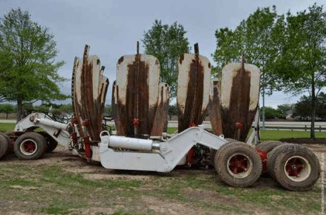 It’s always much more difficult to trace the history of inventions in the modern era but I think the man responsible was Albert H Korenek of Angleton, Texas. In 1962 he began “building a model of my dream tree digger in our old farmhouse attic. This first model was built of plywood with four flat blades forming an inverted pyramid-shaped ball. After completing the model, I tried to hire Bill Peltier, a [local] welder and fabricator, to build a machine from the model. He was too kind to laugh at me, and refused to build the machine saying I’d only be wasting money because the idea wouldn’t work even if built.”