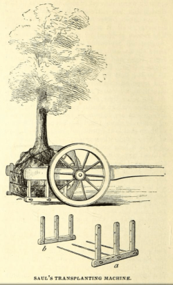 First up in McIntosh’s list was “Mr Saul’s tree and shrub lifting machine” which was a “very simple contrivance, and exceedingly well calculated for the removal of subjects under half a ton in weight.” Matthias Saul was a Lancaster gardener and nurseryman who devised a whole series of other “interesting” gadgets and he too will be getting a post of this own one day. He often appears in the gardening press from the 1820s until his death in the 1860s.