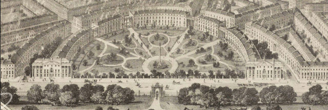 To encourage work to start again a rethink was needed. Other architects including James Thomson, a pupil of John Buoanrotti Papworth, became involved and the final design clearly reflected the additional experience that they had in landscape design. In place of Allason’s monumental circus a completely different layout was created in which the paddocks survived but in a new form as the idea of the square was turned on its head.