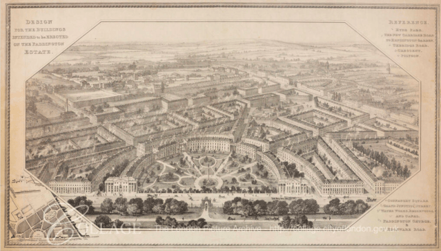 Cubitt’s work in Bloomsbury, Belgravia and Pimlico was done on a grand scale with him working in concert with the landowners. A different approach was taken when the Bishop of London decided to develop their extensive estates in Paddington on the then western outskirts of London.