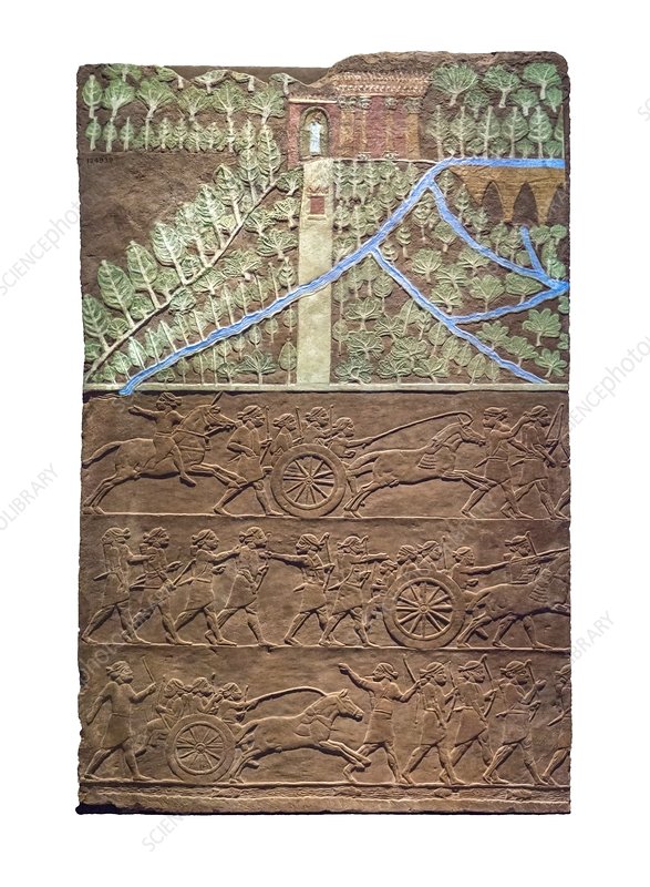 There was precedent for such large scale projects in Assyria. Sennacherib’s father Sarghon had carried out  landscape engineering at his own citadel at Khorsabad, and in collecting exotic plants  Sennacherib was following in the footsteps of other earlier  Assyrian kings going back  to the time of  Tiglath-Pileser I. [See this earlier post for more about that]