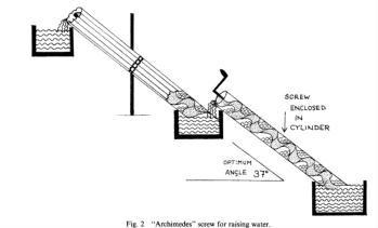 Diodorus had said ‘There were machines raising the water in great abundance … although no-one outside could see it being done”.  Strabo said there were stairs up the slopes of the garden and alongside them “screws through which the water was continually conducted up into the garden’.  Finally  Philo  described how water  was  forced up ” running backwards, by means of a screw; through mechanical pressure they force it round and round the spiral of the machines.”