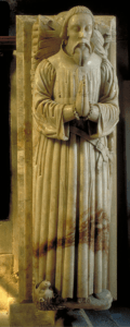 Tresham is shown transcribing two psalms with his right hand and holding a skull in his left. Worldly symbols occupy the lower left side – idle pursuits such as music, archery, hunting, dice and cards while more serious ones, such as farming, building and books. All these are underneath an elaborately clothed arm with its hand holding a globe. On the right we see symbols of spiritual life, particularly Catholicism. Underneath Christ crucified are the symbols of the Passion, a chalice and host together with a set of rosary beads. Between the two are three Latin words: Laqueus : a snare, trap or noose. Solutus: unbound, absolved or freed and Liberator : which together can be interpreted as a sign of his faith that only Christ will set mankind free from the sins and temptations of the world. Around the circumference are two Latin quotations: one from 1 Corinthians chapter 13 verse 9: and the other a contraction of 2 verses of Psalm 77: I’m afraid my Latin isn’t good enough to translate the other inscriptions well enough – so if yours is any better please let me know!