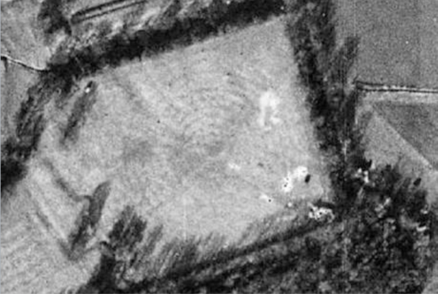 Facing the north eastern arm aerial photos revealed traces of further gardens which had been regularly ploughed over until the Nation Trust persuaded the Barnwell Estate to lease them the land. The photos showed they laid out in a diamond pattern with the diagonals probably indicating gravelled paths. [and what are diamonds but two triangles]