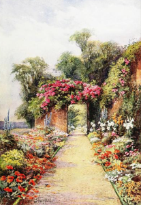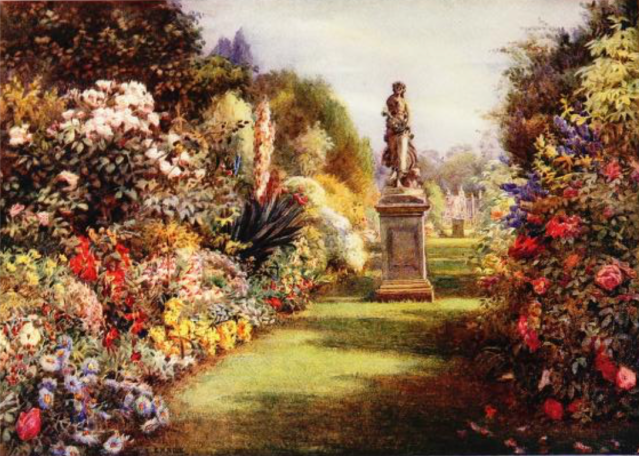 The three special issues on English Gardens divided the country into 3 sections: the Southern and Western Counties which came out in 1907, the Midland and Eastern Counties in 1908 and finally the Northern Counties in 1911. Each was edited by Holme himself and consisted of one or two introductory essays with the bulk of the magazine taken up with illustrations. There were a small number of colour images by leading artists and then a large number of black and white photographs. I’m going to look at one issue today and the other two in another post soon.