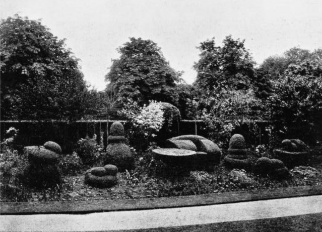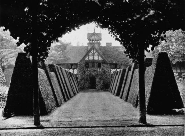 “Whether this device is entirely legitimate is a question for discussion by experts ; it gives, perhaps, a hint of neglect which has produced effects not really allowable in formal gardening. It would certainly be out of place in such gardens as those at Ashridge Park where the dominant note is strict precision ; and it would spoil the trimness of such places as Moor Park or Taplow Court , both of which are interesting examples ot laying-out in the strictly correct manner.”