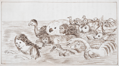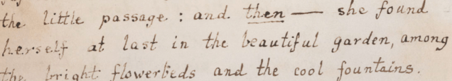 It was on one these outings, a boat trip on the river, on 4 July 1862, that he noted : ” I told them the fairy-tale of Alice’s Adventures Underground.” The ten-year old Alice begged him to write the story down, which he eventually did, later presenting her with the manuscript complete with his own illustrations.