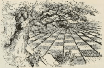 Its after this meeting that Alice discovers that the landscape she is in was a horticultural chessboard with “a number of tiny little brooks running straight across it from side to side, and the ground between was divided up into squares by a number of little green hedges, that reached from brook to brook.” However as the Red Queen concludes “I’ve seen gardens, compared with which this would be a wilderness.”