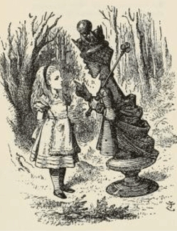 “She’s coming!” cries Carroll’s Larkspur. “I hear her footstep, thump, thump, thump, along the gravel-walk!”