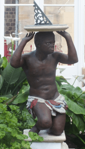 Of course my friend, Patrick Eyres, had a good reason to notice – he’s an expert on 18thc gardens and garden statuary and was a trustee for many years of the wonderful gardens at Wentworth Castle in Yorkshire. There, as part of a bid for a grant to restore the gardens and the great Victorian conservatory he has made a special study of a blackamoor statue in the grounds. It was the only survivor of the original garden statuary. Representing a kneeling African man it was made of lead and dated from the early 18thc. It had almost certainly been bought and installed by the castle’s owner Sir Thomas Wentworth a diplomat who helped to negotiate the Treaty of Utrecht in 1713.