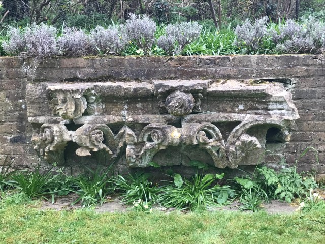 The path runs parallel with the lane down to the western end of the garden. The stone fragment in the image below can be seen set into the wall on the left.