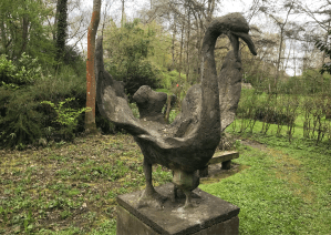 Amongst things the visitor following them goes past the end of the lime avenue and gets a chance to see the swan sculpture close up, with the scooped-out hollows of the wings making bird baths. It’s hard to believe that its concrete.