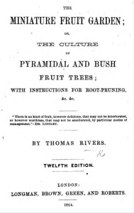 In about 1852 another large glasshouse – the Orchard House – was added based on designs by Thomas Rivers, a nurseryman famed for his work on fruit, whose grounds were at Sawbridgeworth about 25 miles away. Rivers had published his Miniature Fruit Garden, or, The Culture of Pyramidal Fruit Trees in 1840 based on his own experiments with continental techniques, and suggesting growing fruit trees pots under glass, rather than in the open.