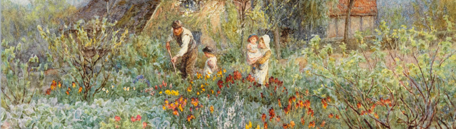 Despite all these good intentions its not really until the mid-century that the cottage garden as romantically imagined begins to emerge in two ways. Firstly it develops a life of its own in published form. The first magazine devoted to the subject of “cottage gardening” appears in 1849 and is followed throughout the second half of the century by a string of books on the same theme. The other, and perhaps more formative factor is the gradual emergence of the cottage garden as a subject for artists, a subject I’m going to look at in the another post soon.