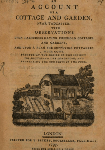 Some thirty years later in 1796 Thomas Bernard a wealthy social reformer who devoted most of his time to social work for the benefit of the poor wrote a short pamphlet entitled An Account of a Cottage and Garden near Tadcaster, in which the term takes on specific associations.