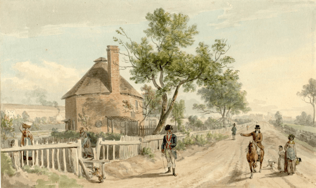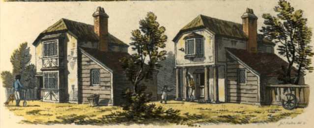 Abbot had worked in the fields from the age of 9, but had prospered, eventually moving to a cottage where “with 2 acres of land and his common right, he kept two cows… And resided very comfortably for nine years” with his wife and six children. Then “an inclosure took place and … obliged him to seek for a new habitation.” Abbot was lucky. He “applied to Squire Fairfax, and told him that, if he would let him have a little bit of ground by the roadside”, then “he would show him the fashions on it.”