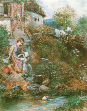 Although children are usually seen playing they can also be seen be working themselves, even if only at domestic tasks as in Fetching Water or The Malt House or perhaps merely watching their parents or older siblings.