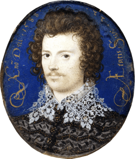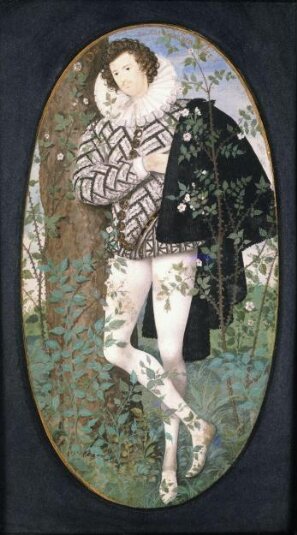 I’m sure that you’ll recognise this picture. Its custodian, the V&A, says it “is perhaps the most famous of English miniatures. It epitomises the romantic Elizabethan age and is a masterpiece of miniature paintings by its greatest exponent, Nicholas Hilliard. The large elongated oval shape of this miniature was never repeated in Hilliard’s work and must relate to the now unknown purpose of the object. Possibly it was incorporated into an expensive object such as a looking-glass.”