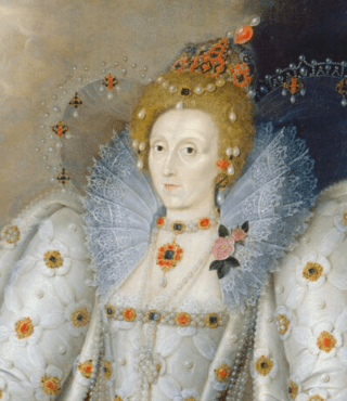 Elizabeth is dressed in the the colours associated with a modest Protestant intellectual: black and white. In the system of heraldry, the tincture of black represents constancy, while the tincture of white/silver represents sincerity. She’s wearing pearls and ermine which both represent purity. Several versions exist – the first sign of the official portraiture based on the idea of standard images which Elizabeth was later to embrace wholeheartedly.