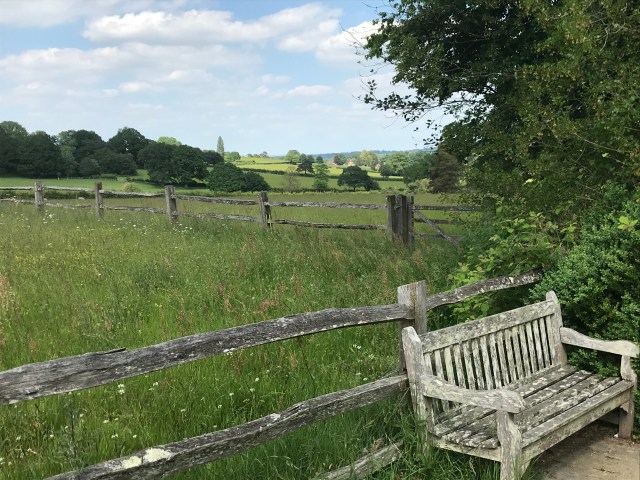 The exit from the house is onto the long terrace on the south side of the house looking out over the expansive landscape. At first sight it looks a bit tatty. There’s no formal bedding, indeed no flower beds at all but instead a sea of long grass dotted with ox-eye daisies and other wild flowers.