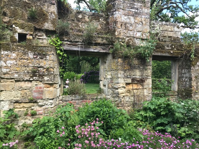 What followed might seem shocking and nowadays simply wouldn’t be allowed, but in retrospect showed Gilpin’s talent. The 17thc wing of the castle was in words of Graham Stuart Thomas “adjusted” – a polite way of saying half-demolished. The roof was removed, the height drastically lowered, the interior gutted, windows removed and then the remaining walls knocked about a bit.
