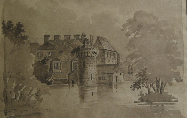 In about 1630 the family remodelled the castle and added another enormous wing which as you can see seems to have dwarfed the earlier building. There are several images of the extended castle which vary considerably.