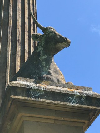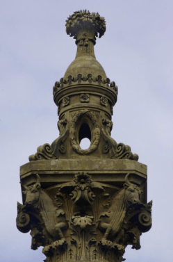 The corners are also sculpted with agricultural themes including an ox, sheep, a plough and a seed-drill. Normally such monuments are topped by a statue of the person being honoured, but not in this case, instead the 37m high column is surmounted by a sheaf of corn.