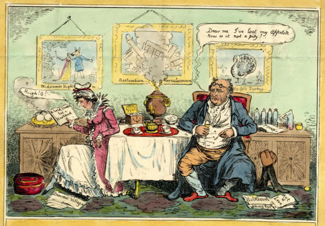 But there were downsides. Despite all his success in maximising estate income Coke was a big spender and by the early 1820s he had accumulated debts of nearly a quarter of a million pounds, some 8 times his annual income. Furthermore, while his agricultural improvement scheme may have attracted a lot of positive attention it also made him the object of some satire, especially when he remarried at the age of 68. His new bride was the 19 year old Lady Anne Keppell. She bore him 5 children including his heir, yet another Thomas, who was to become the 2nd Earl. Although the humour in many 18thc cartoons is lost on us today in this one it is very obvious. [If you can’t make out the detail just follow the link to the British Museum website where it is explained]